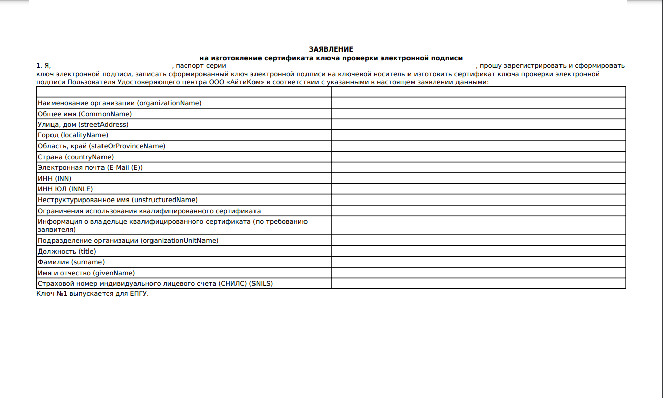 После проверки документов, мы пришлем вам ссылку, по которой откроется заявление на выпуск ЭП. Пример заявления можете посмотреть здесь.